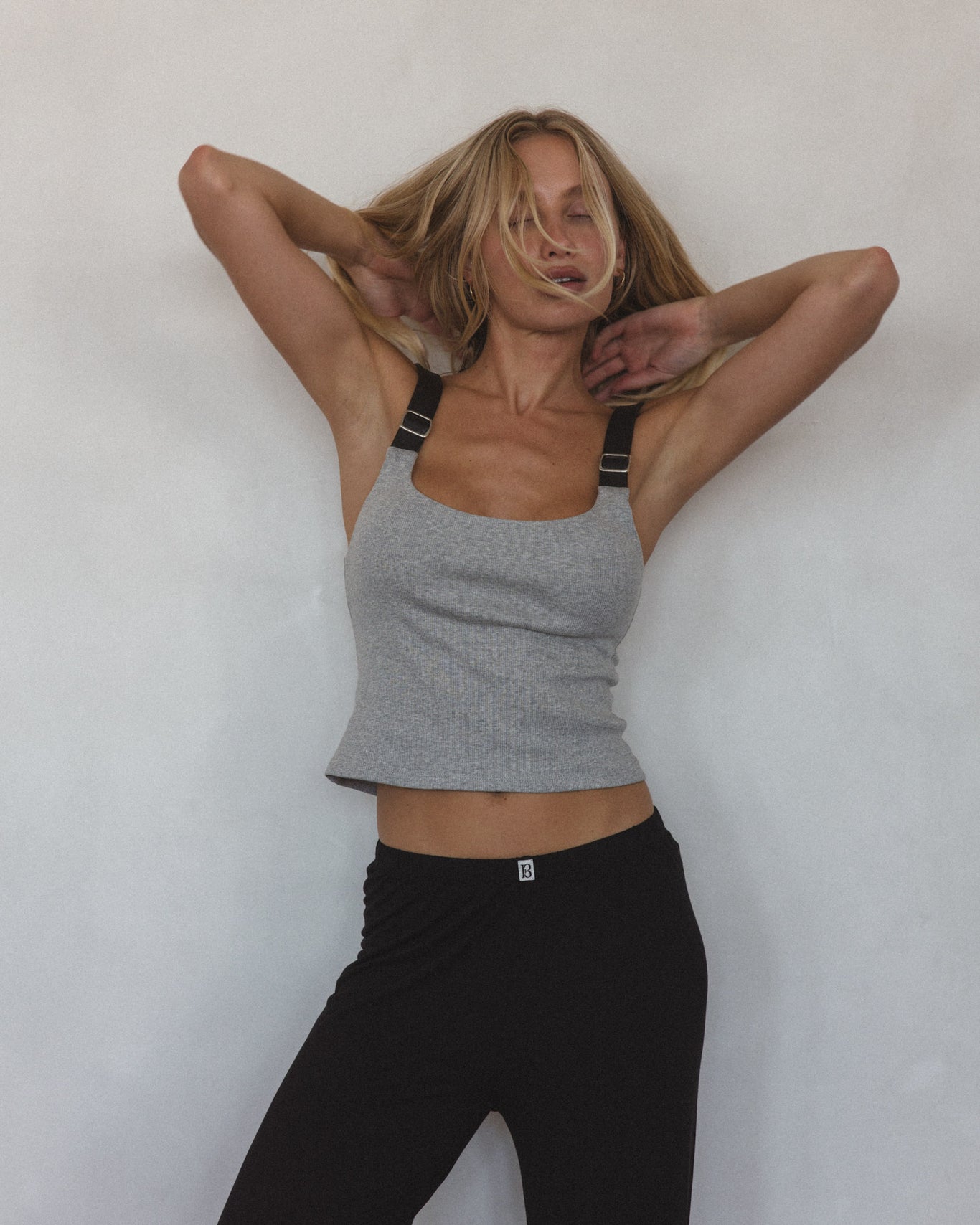 The Faye is crafted in organic cotton rib with a neckline that does all the work—framing the collarbone and opening just enough for a subtle edge. Soft, breathable, and endlessly versatile, it’s the piece that pairs with everything from vintage denim to tailored trousers. Designed to skim the body without clinging, it’s the tank you’ll reach for on repeat, season after season.